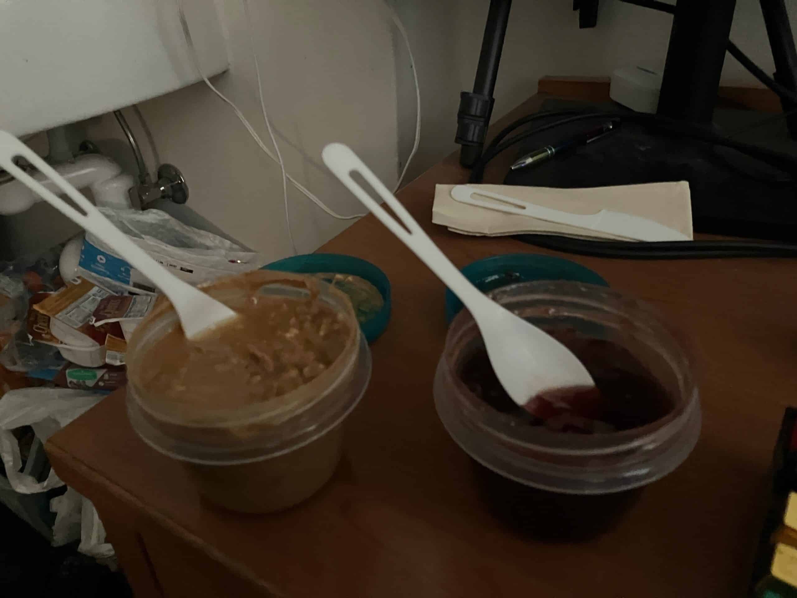 After the 6 AM leg on Saturday (Leg 8, which was the toughest and will be revisited later), though, I was extremely hungry, so I rummaged around in the dorm again. I found some peanut butter and jelly. I didn’t even consider this as a food option before, because I didn’t have any bread.