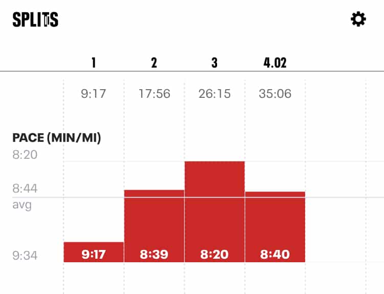 I searched deep inside of me and found energy that I didn’t even know existed. I managed to speed up and finished the leg with an average pace of 8:44.