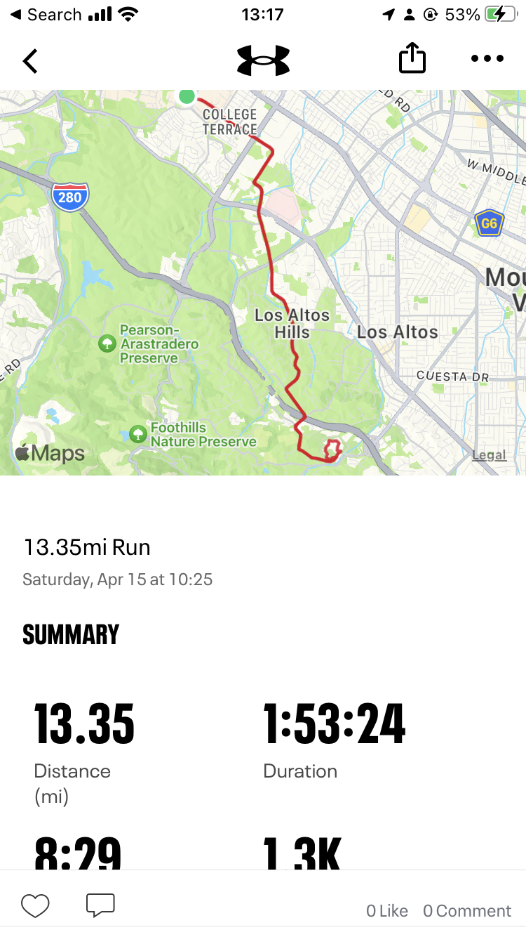 Three others joined me on Leg 12 and cheered me on the whole way back. It was adrenaline-filled, exciting, and overall quite easy. With all the adrenaline, Leg 12 was my fastest of the entire challenge, with an 8:14 average pace.