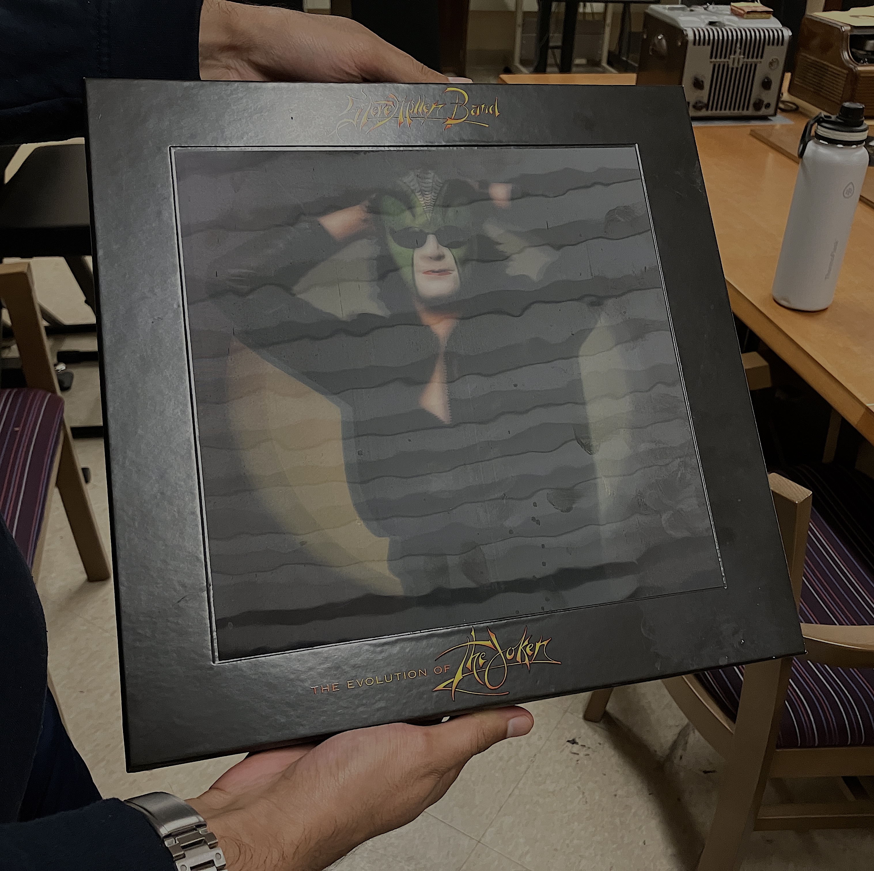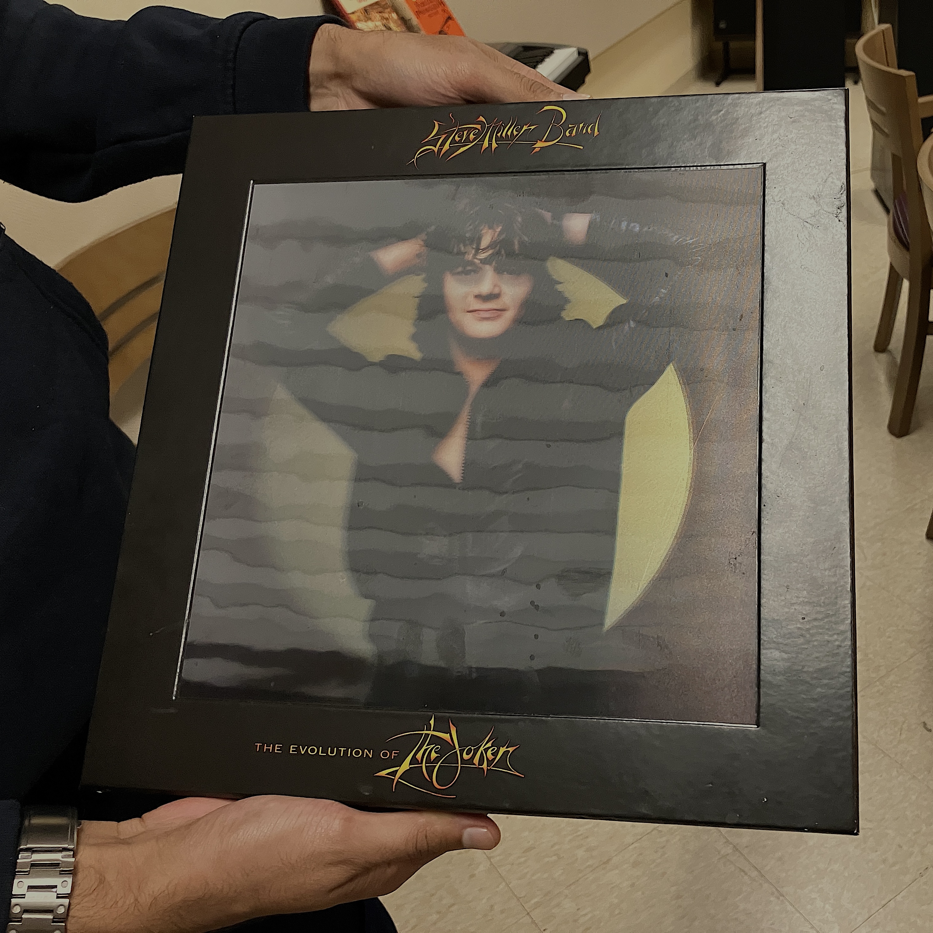 This being said, I don’t know exactly what Steve Miller had gifted to Mark, so I come back to the vinyl dungeon ready for a surprise. I sit down to a copy of The Joker, but it’s one of those images that changes depending on the angle you look at it (TIL this is called “lenticular printing”).